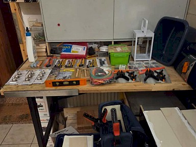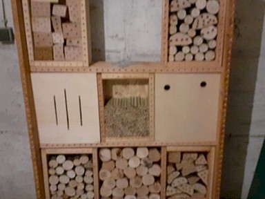 | Einer der fleissigen Akteure für den Artenschutz: trotz Einschränkungen ist Dieter Eppelsheimer mit großem Engagement dabei und baut unermüdlich Kästen. | Günstige Kleinwerkzeuge gibt es überall zu kaufen - damit kann man in Kitas und Schulen zeigen, wie sie beim Bau von z.B. Vogelnistkästen zu gebrauchen sind. | Dieses Insektenhotel wird für den Kriegsgräber-Friedhof in Pfaffenheck gebaut. | ||