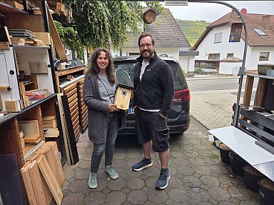 Jürgen Weiß hat heute eine Kofferraumladung mit Vogelnistkösten abgeholt. Als Wegepate auf dem Eifel-Camino wird er dort sicherlich ein paar gute Plätzchen ausfindig gemacht haben. |