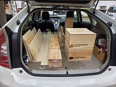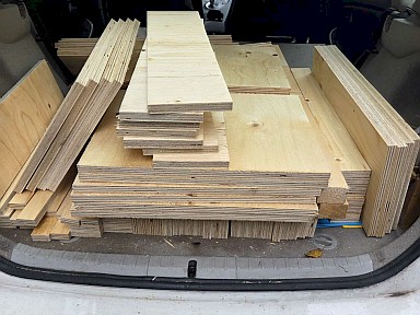 | Gleich einen ganzen Anhänger mit Bausätzen und Material hat Thorsten zum wiederholten Male in Lay abgeholt - in der nächsten Zeit wird einiges zu tun haben. |