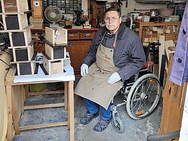| Einer der fleissigen Akteure für den Artenschutz: trotz Einschränkungen ist Dieter Eppelsheimer mit großem Engagement dabei und baut unermüdlich Kästen. | Günstige Kleinwerkzeuge gibt es überall zu kaufen - damit kann man in Kitas und Schulen zeigen, wie sie beim Bau von z.B. Vogelnistkästen zu gebrauchen sind. | Dieses Insektenhotel wird für den Kriegsgräber-Friedhof in Pfaffenheck gebaut. | ||