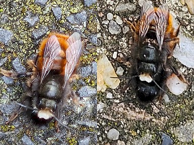 | Die Grün(h)ecken hatten zu einem Aktionstag eingeladen, der gut besucht war. Auch Carl zeigte den Menschen, wie man mit wenig viel erreichen kann. | Sie fliegt wieder - die gehörnte Mauerbiene. Links ist ein Männchen mit der weißen Gesichtsbehaarung zu sehen, rechts ein Weibchen. | Auch auf dem Jakobsweg von Nürnberg nach Ulm hält der Artenschutz Einzug. Auf dem Bild wurde allrdings ein Vogelhäuschen zur Stempelstelle umfunktioniert. | ||