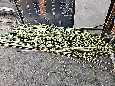 Dieter hat wieder Bambus geschnitten - ein wichtiger Bestandteil von Insektenhotels, in dem vor allem Wildbienen gerne ihre Eier ablegen. |